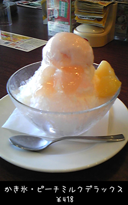 ガストのかき氷、ピーチだけ変わり種だったからはりきって注文しちゃったw