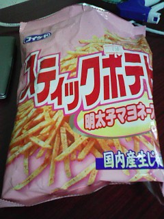 ‘コイケヤ’の「スティックポテト 明太子マヨネーズ味」を食べました。 今月14日に海に行く途中寄ったコンビニで相方に買ってもらった250円賞味期限切れだったやつです。 (スナック菓子で賞味期限切れるってどんだけ流行ってないコンビニなんだろう?!) 湿気っても腐ってもなくて良かった~; 味は明太子マヨネーズです。結構量もある感じですしおいしかったです。 というか猫路は明太子味のお菓子が好きなようです◎
