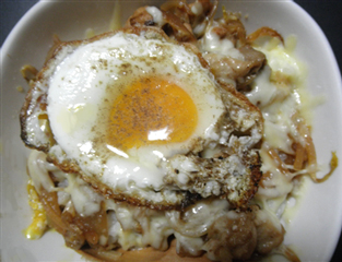 夕 : チーズ鶏もやし丼、ジャスミン茶