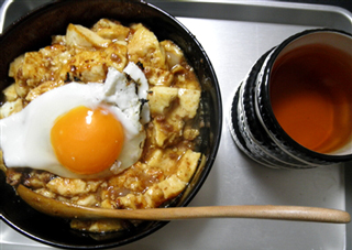 夕 : すき焼き肉豆腐丼、ほうじ茶