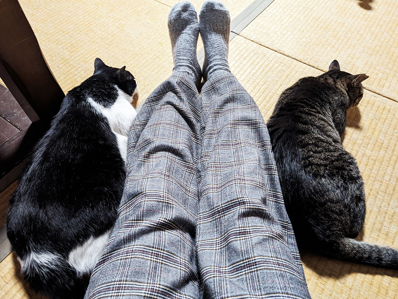 ごん太ともちおは基本母の部屋で母と過ごして母が遊び母がご飯をあげているわけで。圧倒的に母の方に懐いています。が、最近ごん太がくるともちおも来てたまーーーーにこんな感じで侍らせ状態になれることも出てきました。可愛い。ごん太は甘えに来ててもちおは見に来た、もしくはお尻トントンして欲しくて来てる感じがします。