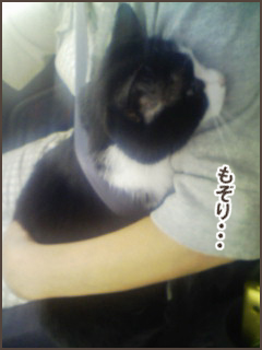 運転してるおかんの膝に落ち着いて…というより固まってじっと座ってたにゃんこ=小次郎がもぞもぞしだして、何をするのかと思いきや・・・
