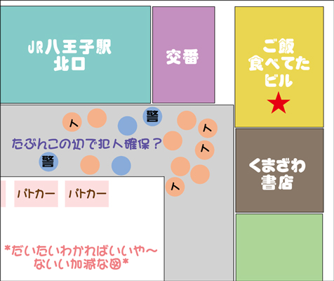 一昨日交番横のビルの居酒屋でご飯食べて出てきたら交番前人だかりで、それが八王子通り魔事件の犯人確保前後の時間だった・・・