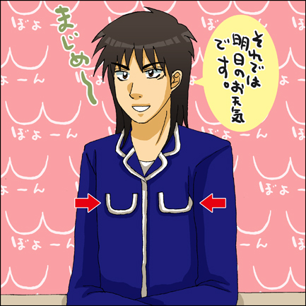 とか答えやがるので胸を見ると、確かにジャケットの白いラインがおっぱいに見える・・・っ!
