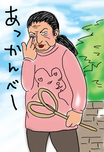 ↑これ以上ないくらい力いっぱいあっかんベーする陽気なおばさま。
