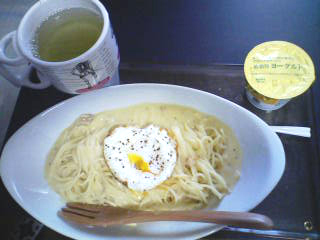 昼 : カルボナーラ、ヨーグルト、緑茶(コラーゲン入り)