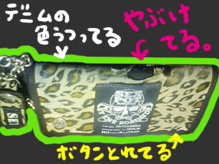 ボタンとれて、生地が破れて、デニムの色が写って、もう1年くらいそのままで使ってます。