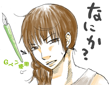 私は手もとにあったペン立てから一本のGペンをとり髪にグリっとやってみました。
