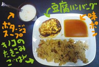 豆腐ハンバーグの素って原信かどっかで売っててそれで作っただけだよ。