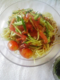 実家に帰って次の日の初ランチは冷やし中華を作ってみました。野菜はおばあちゃんが畑で作ったのがいっぱいあるので久々にちゃんと野菜を摂取しました。