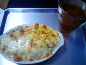 ポテトグラタンはレンジでチンしたイモと玉ねぎにベーコン加えててけとに味付けして炒めたものに市販のかけるだけタイプのホワイトソースとチーズのっけてトースターであっためただけのものです。