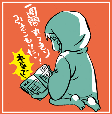 大掃除もしたいし本もじっくり読みたいし絵ももりもり描きたいしホムペも更新したいし、女性ホルモン作られる時間帯にきちんと寝たいし、昼からビール飲みながらアニメとか一気に見たいし・・・今やりたいことのトップ10は多分部屋の中のことな気がします。