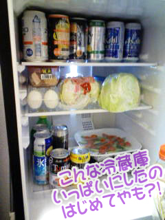 普段冷蔵庫物あんまし入れてないからぎっちりつまってると見ると自分ちの冷蔵庫じゃないみたいに見えたよw