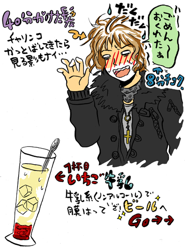 いや、イラストじゃ伝わんないケド雨の湿気と自転車爆走でウェーブは伸びきるしそのくせ広がりまくって悲惨だったよ;