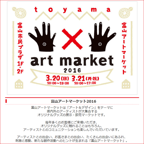 ‘富山アートマーケット2016’のパンフレットが本日届きました。