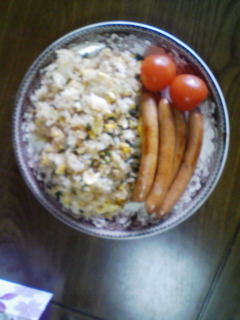 昼はおかんが14時過ぎに帰ってきたので先に一人で春菊入りたらこ炒飯とソーセージとミニトマトと発泡酒をいただきました。