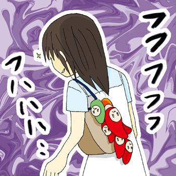 服は白っぽいのにキューピーだけがやたら赤々としております。