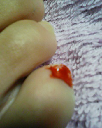 写真、ペディキュアみたいですが血です。。。ダメな方ごめんなさい!(とかいう私がかなり血が苦手;)