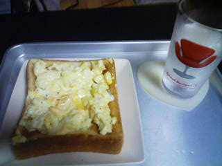 といってもレンジで作ったゆで卵もどきにマヨネーズと胡椒混ぜてトーストに乗っけただけで作ったって言うほどたいしたもんじゃないけど。