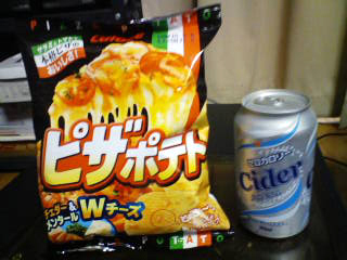 昼 : ポテトチップス、ゼロカロリーサイダー