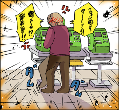 と思ってよく見たらおばちゃんの相手は公衆電話。