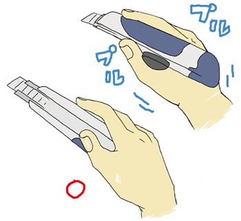 ダンボールとか切るときの持ち方ならともかく、鉛筆のように持つには無理があります。