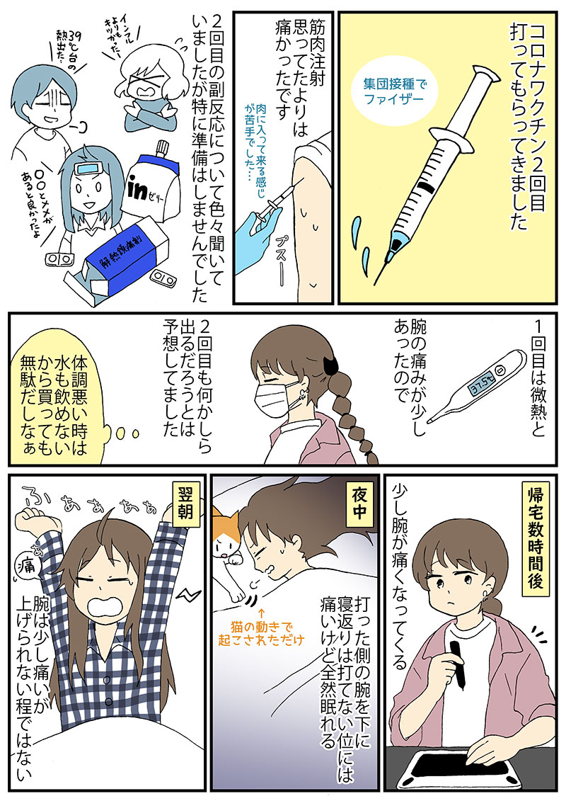 10月に2回目のコロナワクチンを接種完了して描いたレポ漫画、の2枚目の着色をしないまま放置していたのを今日仕上げました。