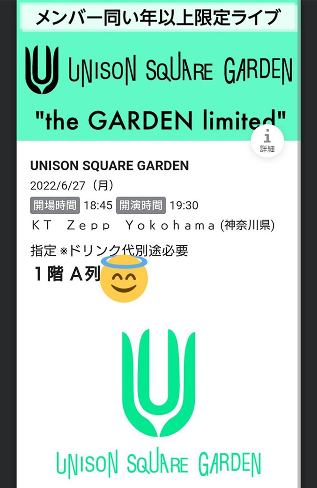 月曜日、横浜で行われたUNISON SQUARE GARDENのメンバーと同い年以上限定ライブです。