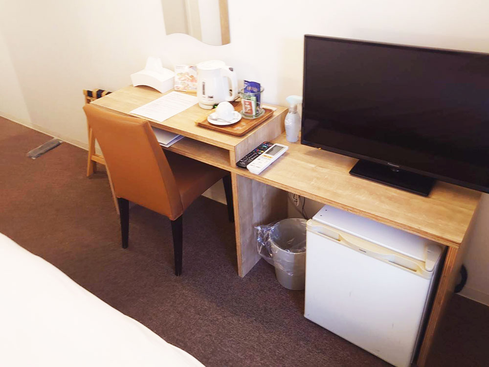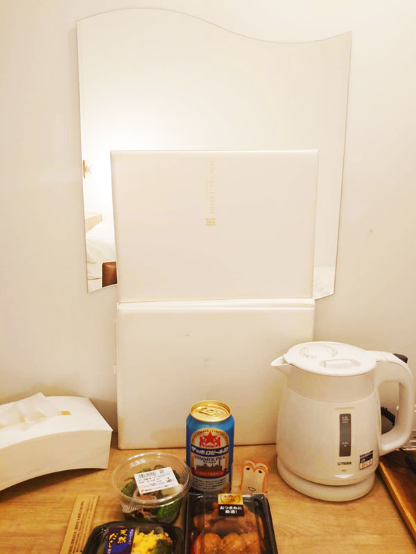 ビジホあるあるとしてはテーブルの目の前鏡なことが多くてご飯食べてる自分の姿がちらちら目に付くのが気になるのですが今回はテーブルの下にあったホテルの説明とか書いてあるファイルがいい感じにすっと立ってすっと隠せて良かったです。