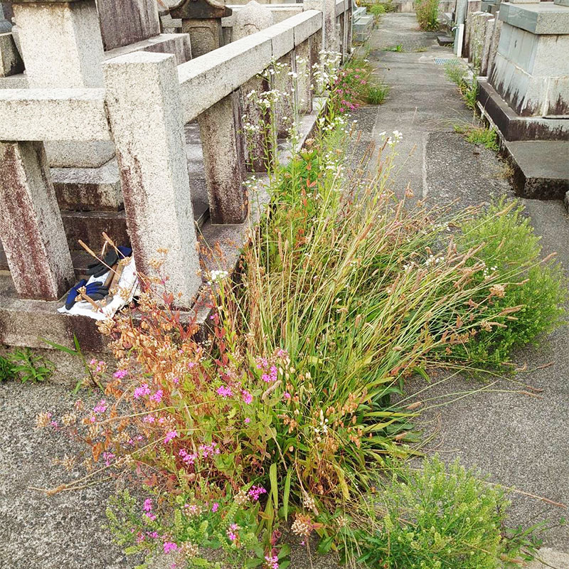 うちはお墓自体が隣近所より少し大きい上に周りのアスファルトが無くなって土がむき出しで雑草が生えやすく…おまけに画像には写ってないないですがご先祖が