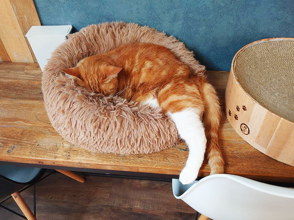13時半前に行ったのでちょうどお昼寝時間だったのか1時間いる間に一度も顔を上げずに爆睡してる猫さん達が大半でした。