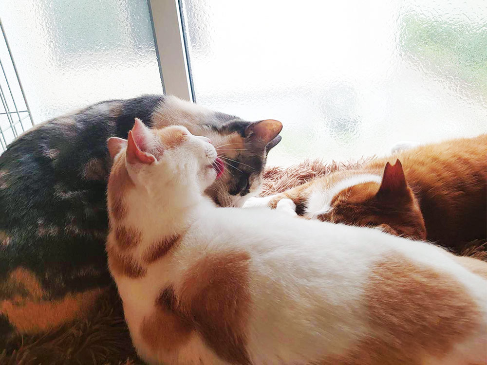 最初の方に何匹か寄ってきて構ってくれましたがあっという間にお休みタイムに。