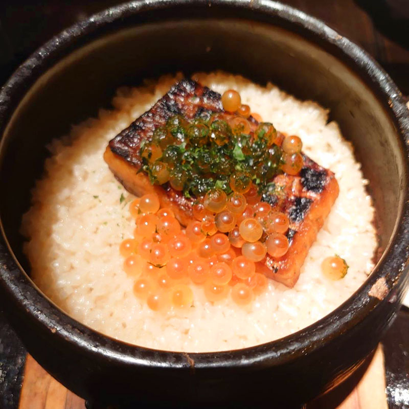 サーモンと魚卵大好きなのでハラスとイクラの釜めしは真っ先に注文しました。