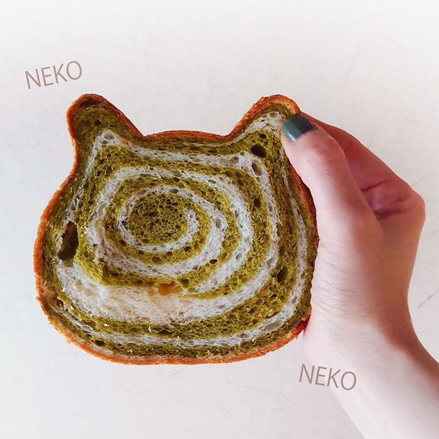 この猫型食パンSNSとかで見かけたことはあるけど抹茶は初めて見たなぁと思って調べたら5月限定のフレーバーだそうです。