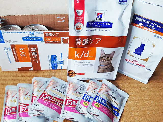 「今のとこ腎臓ケアのごはんを食べてる子はいないから高齢猫用のフードだけなら。メルカリとかに出してみたらどうかな?」