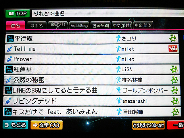 歌った曲リスト