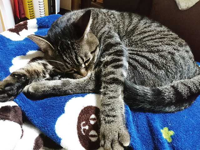 ヨリは相変わらず毛布に引きこもり気味でしたがゴンちゃんは座椅子の上でくつろいでくれるようになってました。