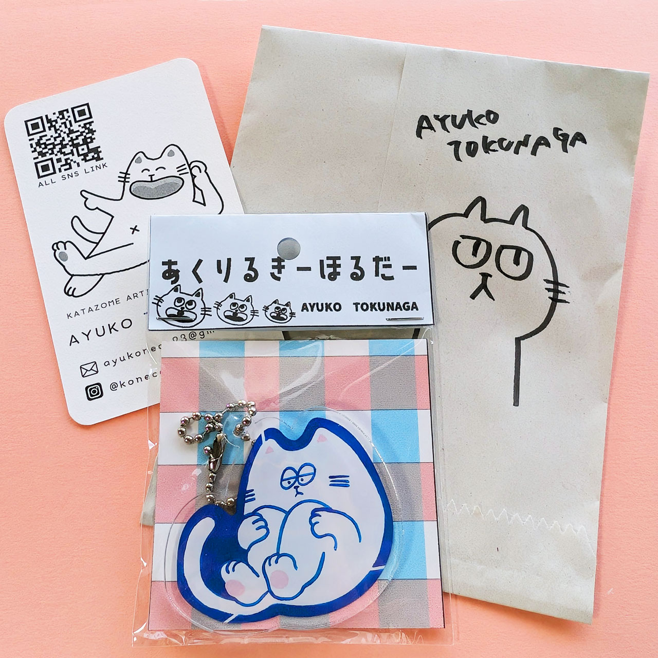 ブースの前を通りかかった時にイラストのテイストが可愛くて何かお迎えしたいなと思ってステッカーと迷ってキーホルダーにしました。