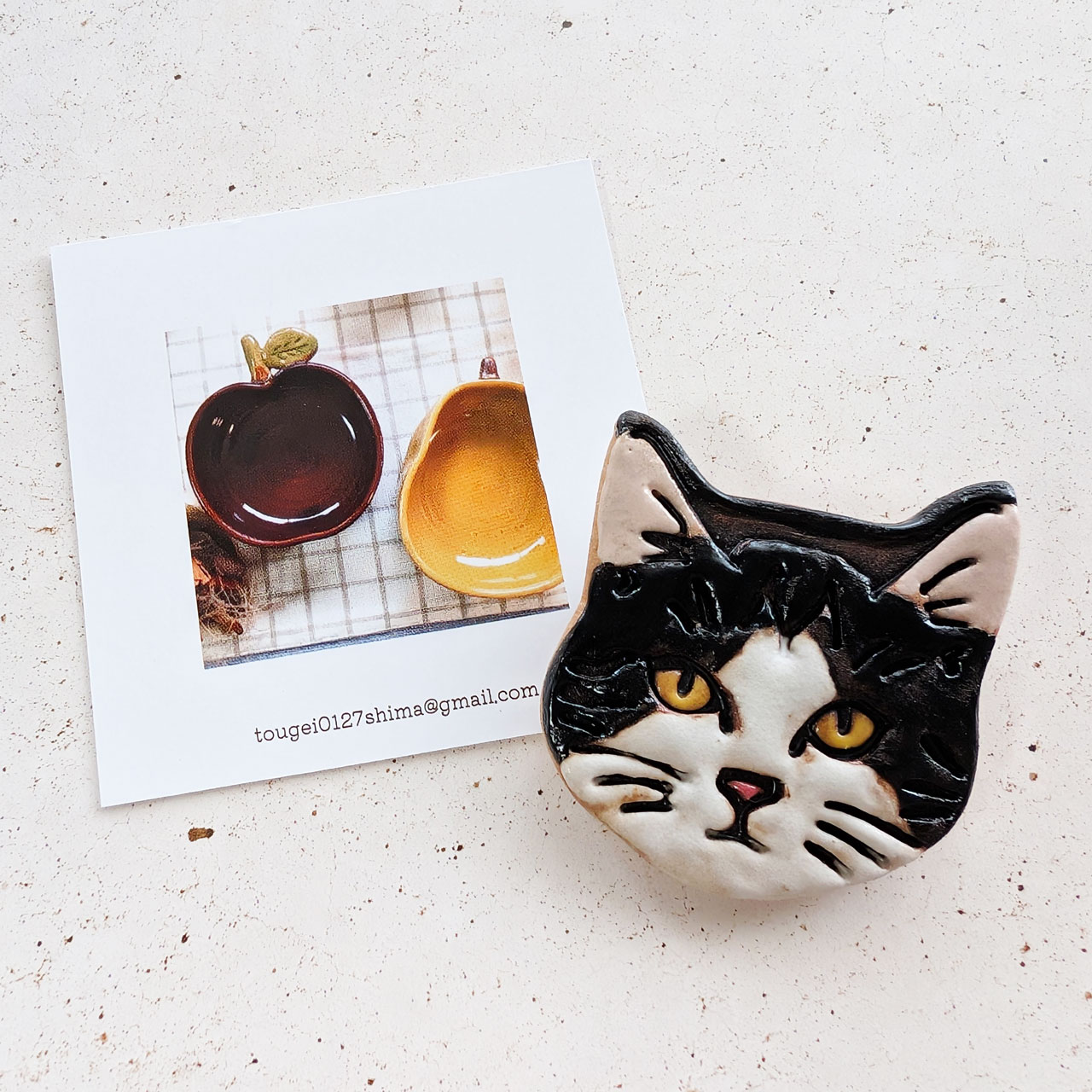 ↑こちらは「島工房」さんの陶器のブローチ