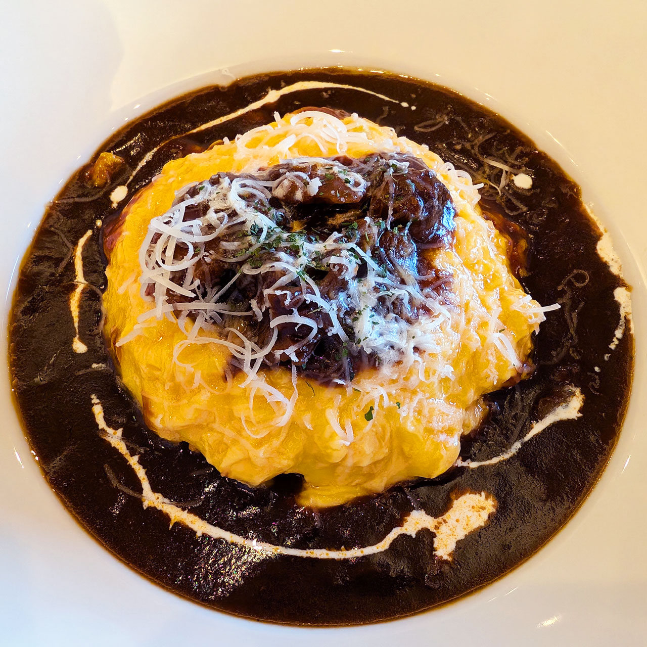 「あふれるチーズと濃厚ビーフシチューのふわとろオムライス」