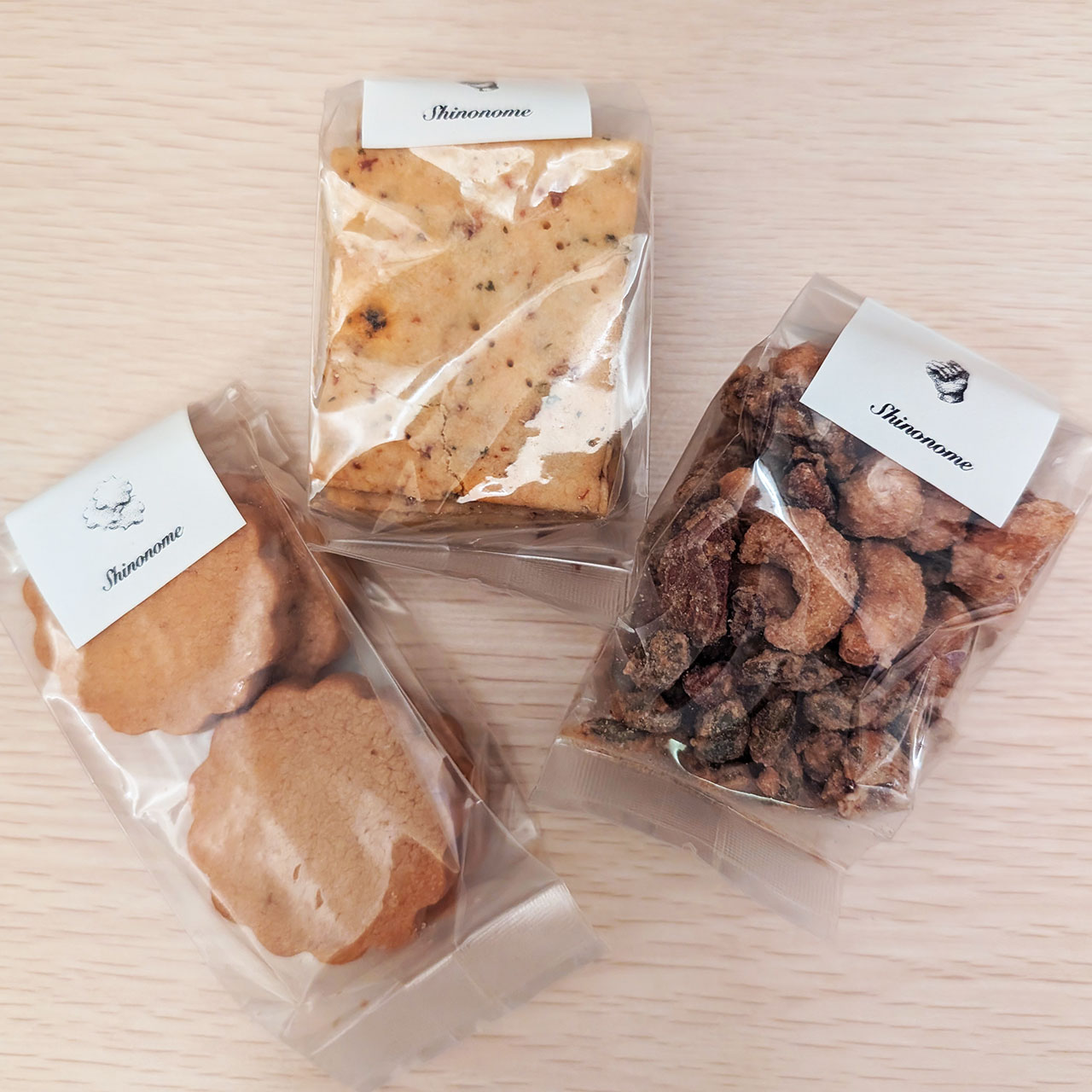 メープルクッキーとナッツのキャラメリゼとペペロンチーノのクラッカーを購入。
