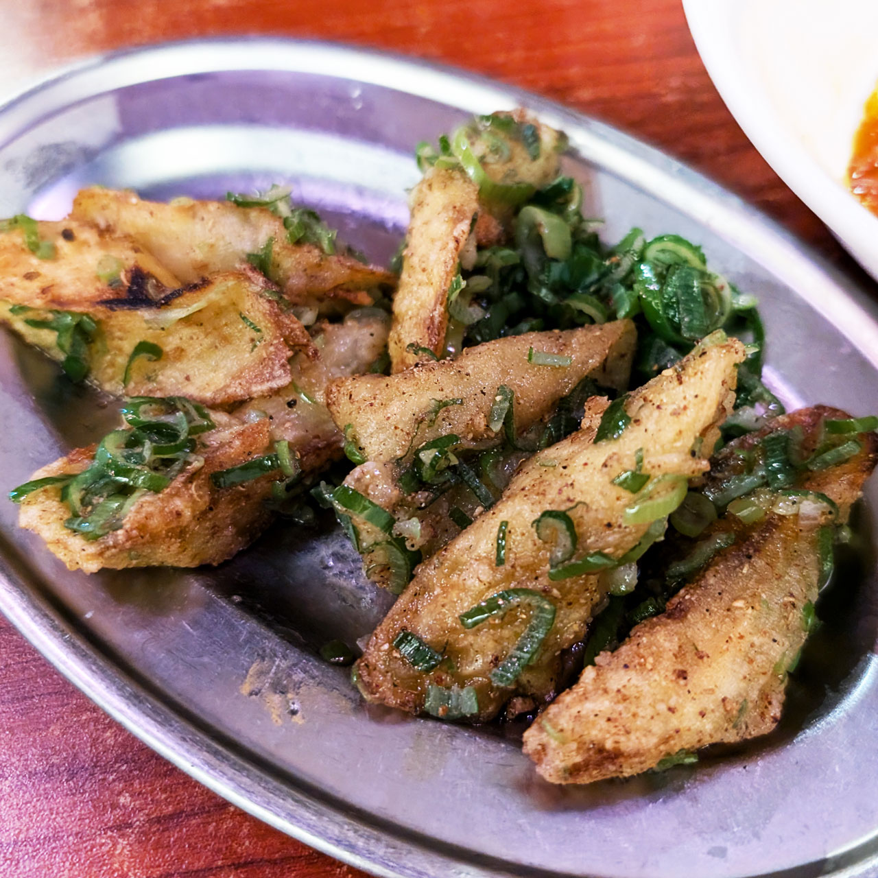 揚げナス山椒(名前うろ覚え)はナスも山椒も好きなのでこれ絶対食べたいと思ったらまさかの近くの2席の方々も同じの同時に到着しててみんな揚げナス好きなんだなと謎の親近感でほっこりしました。