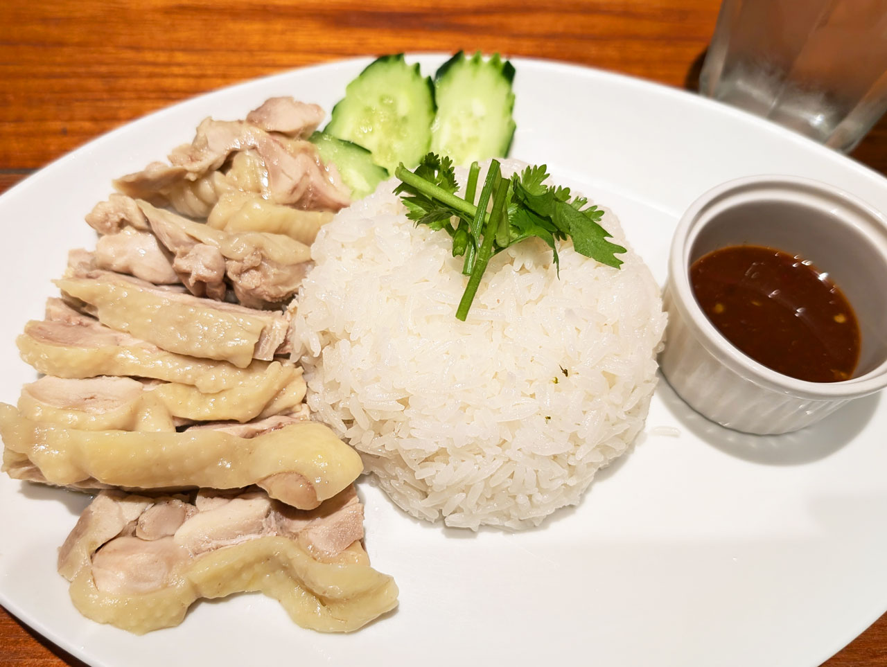 冷やし中華に茹で鶏のせる派だしパクチーも好きだし米派だし嫌いな要素なかったですカオマンガイ。