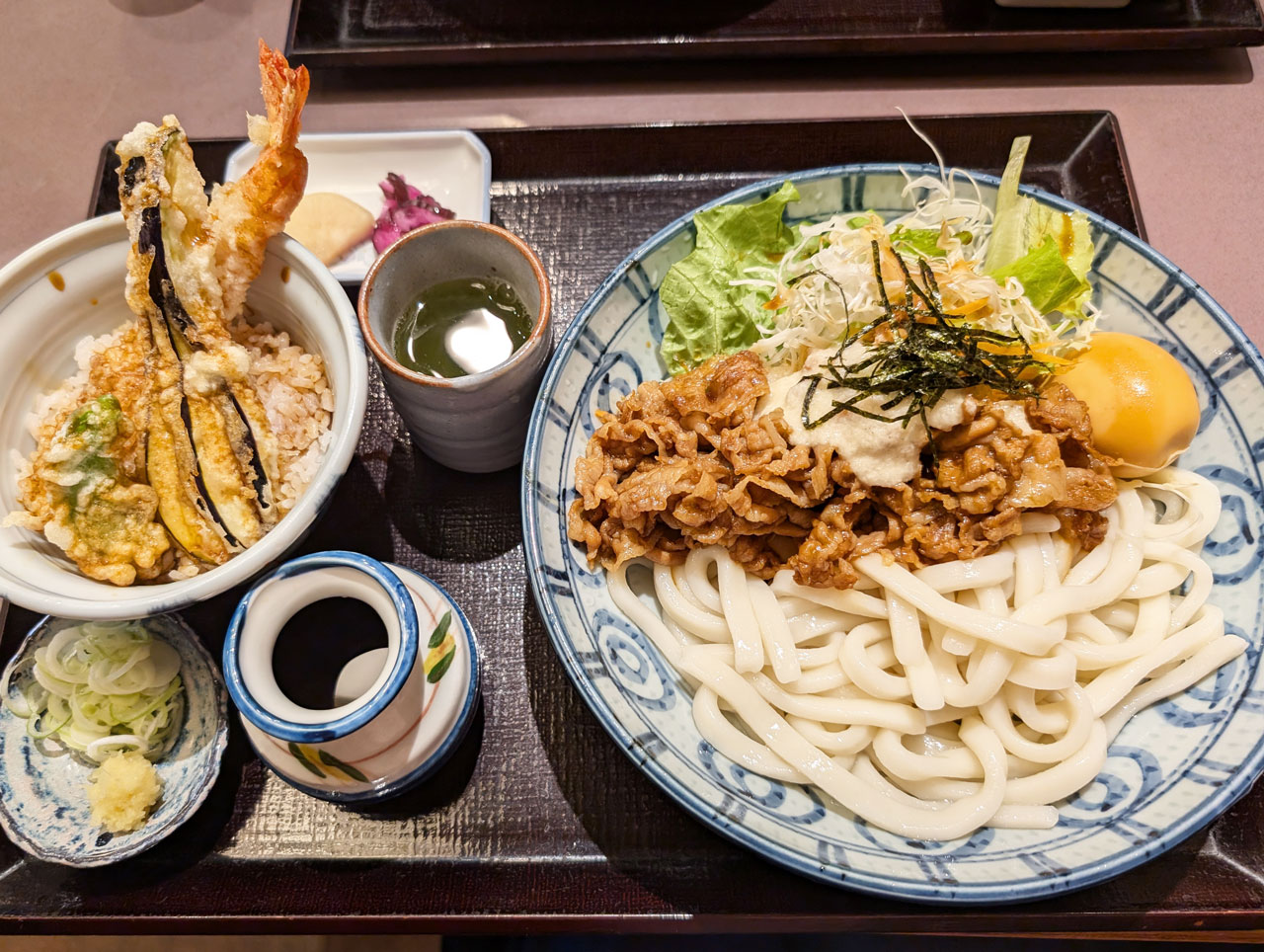 母は「冷やし海老天うどん」と「ミニ海老天丼」の天ぷらまみれの組み合わせで完食していました。強っ!