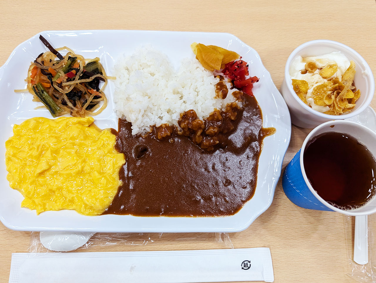 しかもスクランブルエッグがあるのでトロトロたまごトッピングカレーが朝から食べれました。