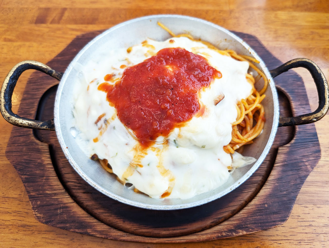 ナポリタンにホワイトソースとチーズがかかった皆好きそうなやつ。