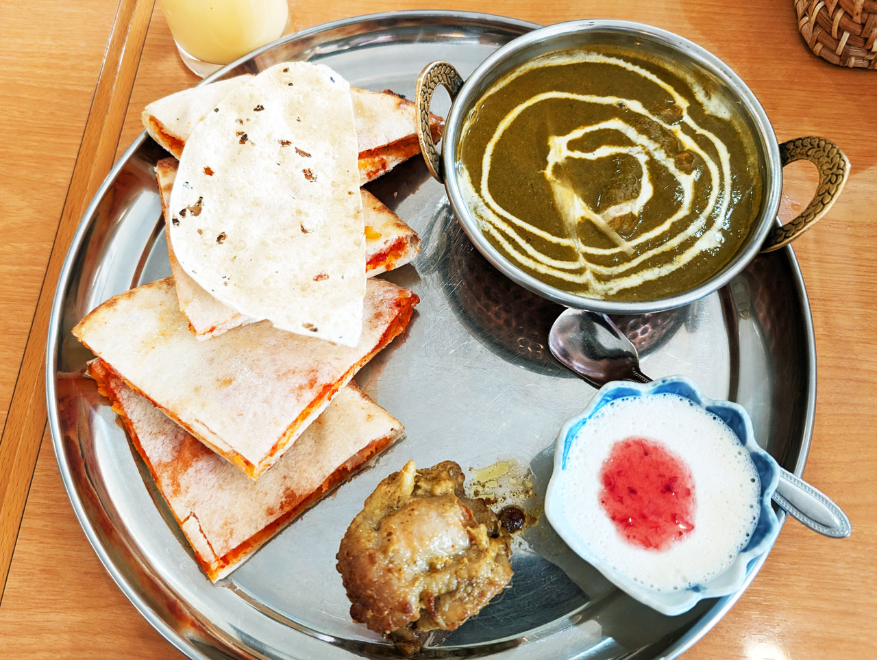 カレーはほうれん草チキンカレー、ナンはアルキーマナン、ドリンクはマンゴーラッシーを選びました。