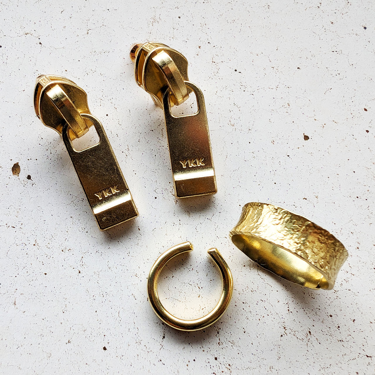 お迎えしたのは「smaile.y.u」さんのファスナーピアスと「grocca」さんのリングとイヤーカフです。