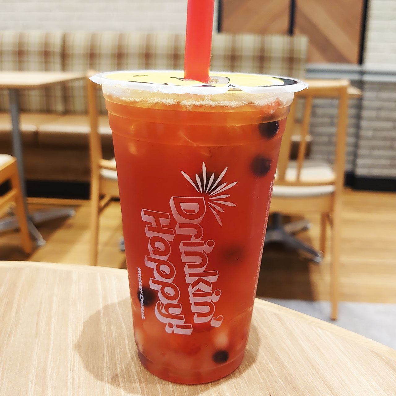 ムニムニしたものが入ってて面白い食感ですが、タピオカほどの弾力はないのであっさり飲みやすかったですが氷と細かい具材みたいのが混ざって最後の方とても飲みづらく(物理)無理に吸ったり蓋こじあけたりしてなかなか上手に飲めなかったので氷はないかスムージーみたいだともっと良かったのかなと思いました。
