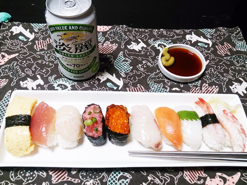 今日は一週間お疲れ~ってことでお寿司とビールを買って帰りました♪